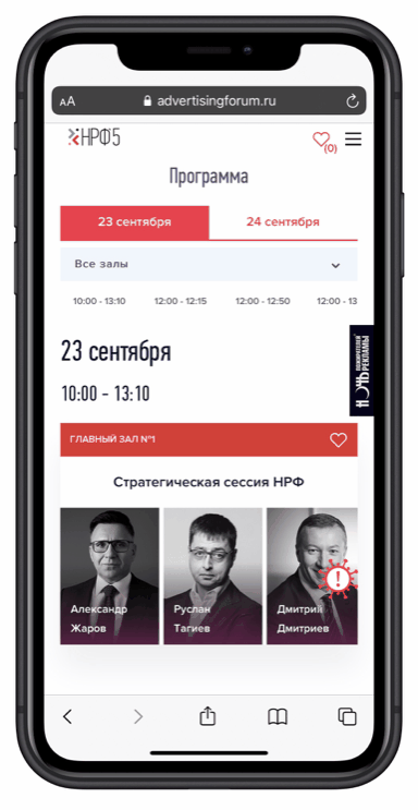 Если у вас уже есть билет на форум, советуем заранее ознакомиться с программой и составить себе план на каждый день. Это можно сделать на сайте Национального рекламного форума, добавив интересующие вас сессии в избранное.