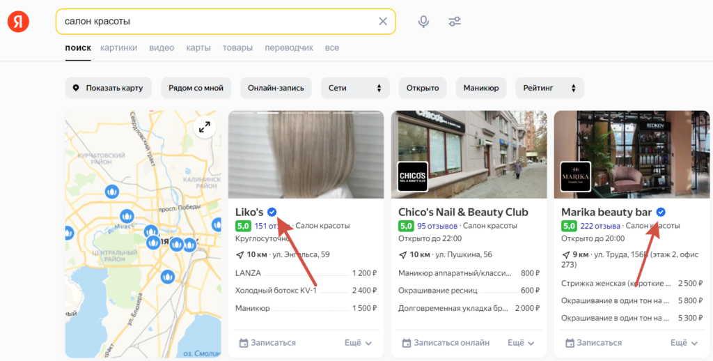 Зачем все это? Кроме очевидного (повышаете лояльность пользователей, привлекаете новых клиентов) вы получаете знак «Информация подтверждена владельцем», который выделяет вас среди конкурентов на Яндекс.Картах и в поиске: