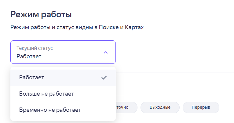 Выберите точное время работы. Режим работы в праздничные дни можно указать отдельно.