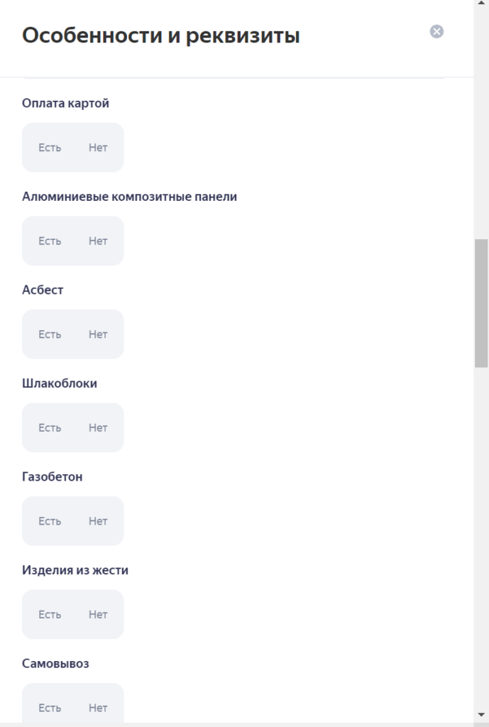 Здесь можно добавить информацию о доставке: стоимость, сроки, регионы. Эти данные подтянутся на сайт от Яндекс Бизнеса.