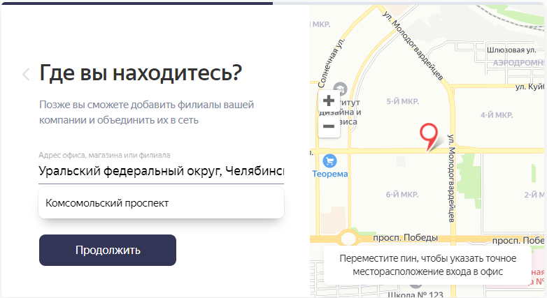 Для офлайн-бизнеса на следующем этапе нужно выбрать адрес: