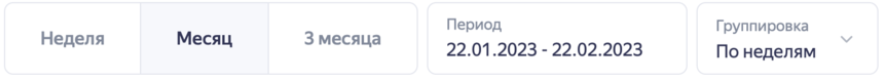 Период, за который нужна статистика, можно выбрать, а также сгруппировать данные по дням, неделям или месяцам.
