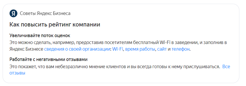 Ниже советы от Яндекс Бизнеса, как повысить рейтинг.