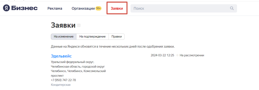 После сохранения данных заявка отправляется на модерацию.
