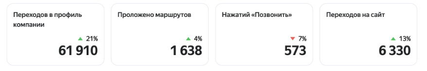 Действия пользователей в профиле компании и целевые действия на сайте.