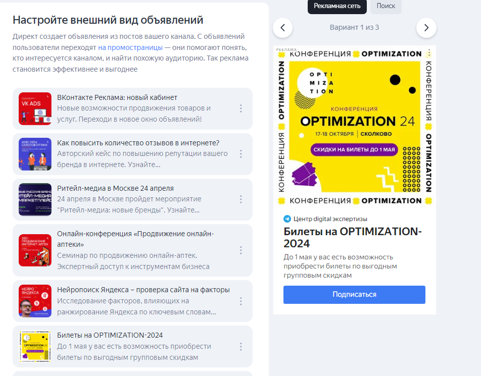 Особенности размещения в Telegram-каналах через Яндекс Директ
