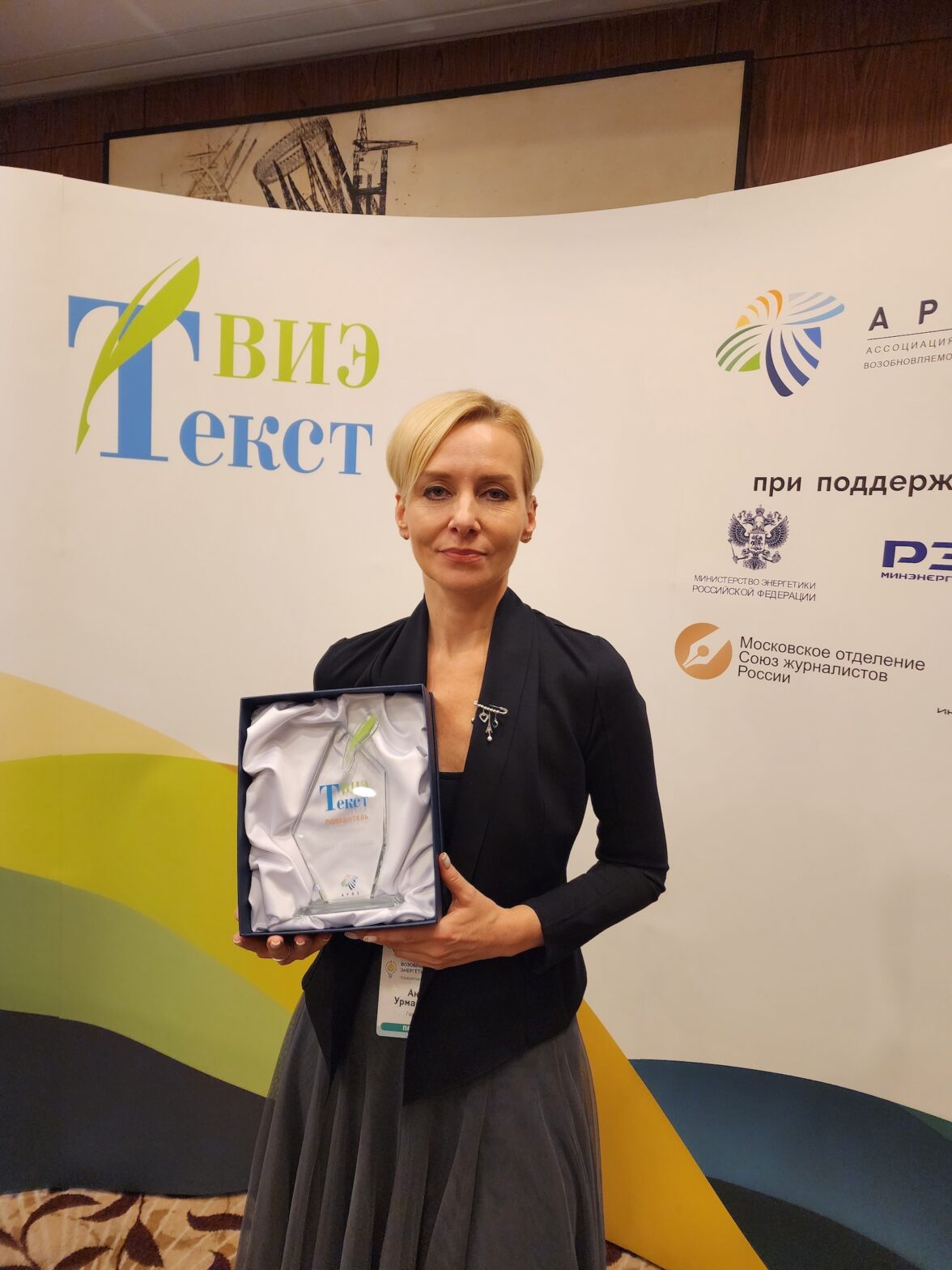 6 декабря состоялась церемония награждения Всероссийского конкурса СМИ, интернет-ресурсов, блогеров в сфере возобновляемых источников энергии «ТекстВИЭ». В номинации «ВИЭ — это рядом» награду получила заместитель главного редактора «Газеты.Ru» (входит в медиахолдинг Rambler&Co) Анна Урманцева.