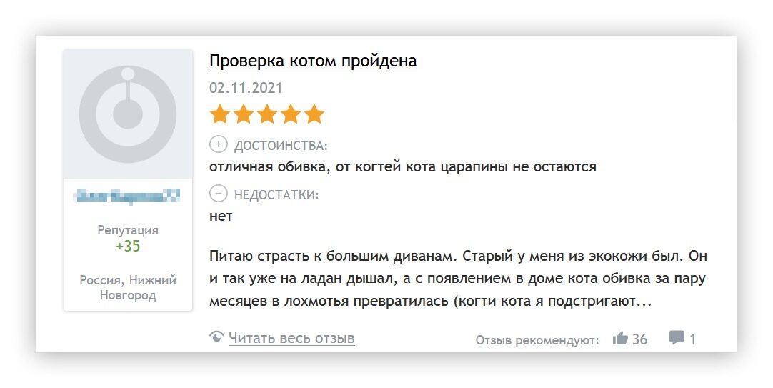 Отзыв о диване может подкинуть идею для публикации — «Какие материалы мы используем для обивки, и в чём преимущества каждого из них»