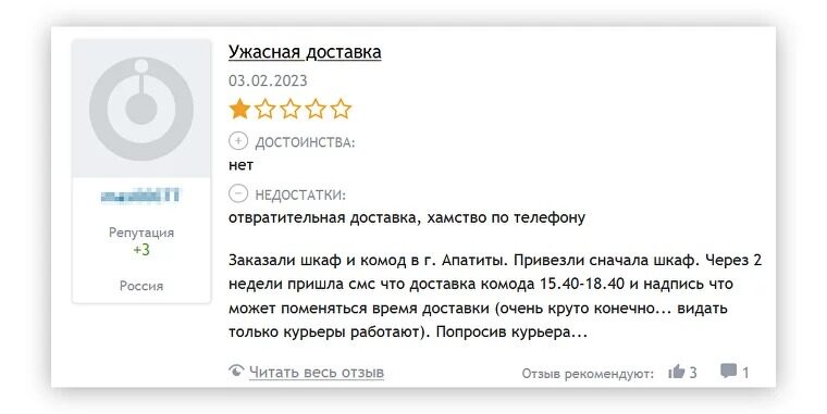 Ещё один отзыв о диване: после него можно рассказать читателям, как устроена доставка в компании, и что делать, если заказ задерживается