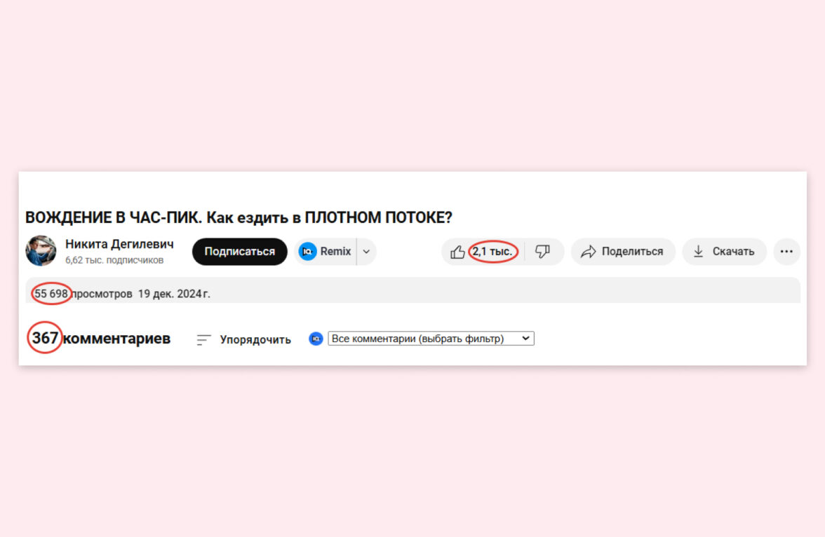 На YouTube мы можем посмотреть ERR (Engagement Rate by Reach — коэффициент охвата)всего ролика — этот показатель зависит от темы основного ролика и не подходит, чтобы оценить эффективность интеграции. Например, мы размещаем интеграцию отпаривателя в ролик «как ухаживать за одеждой». В ролике блогер перечисляет 5 лайфхаков, один из которых посвящен отпаривателю и его участию в уходе. В этом случае, ERR у ролика может быть высоким, но не факт, что зрители не перемотали интеграцию. В этом случае можно опираться на другие инструменты: таймлайн, данные о глубине просмотра и перемотках. А еще посмотреть, что о товаре пишут в комментариях.