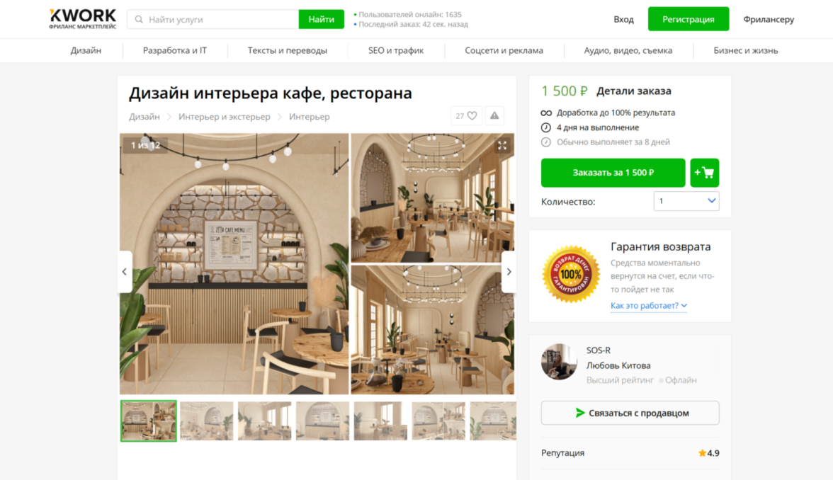Kwork. Сервис еще называют маркетплейсом фрилансовых услуг. Аккаунты исполнителей называются кворками и позиционируются как товарные полки. Для заказа работы определенного специалиста клиент оплачивает услугу подобно покупке в интернет-магазине.