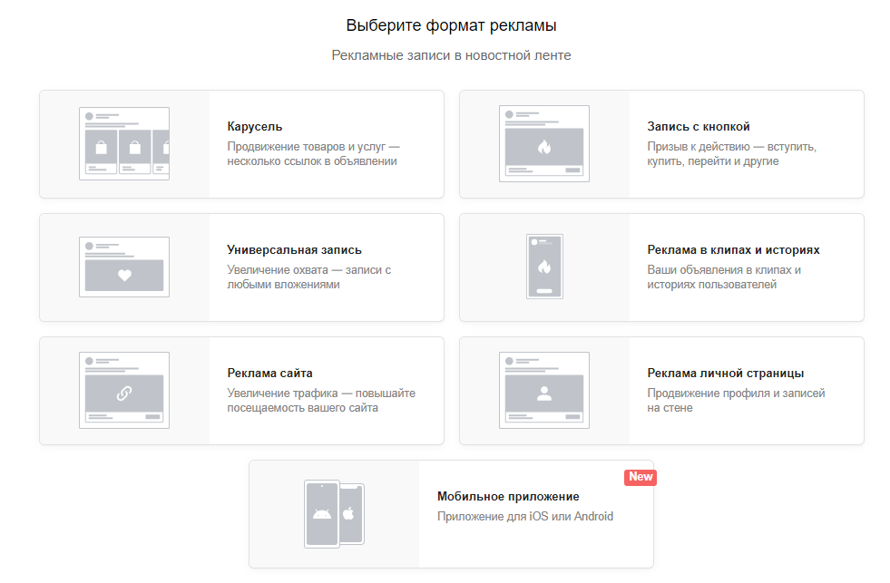 Вы можете запустить рекламу любого формата и для любых целей – узнаваемость бренда, привлечение трафика, получение клиентов и т.д.