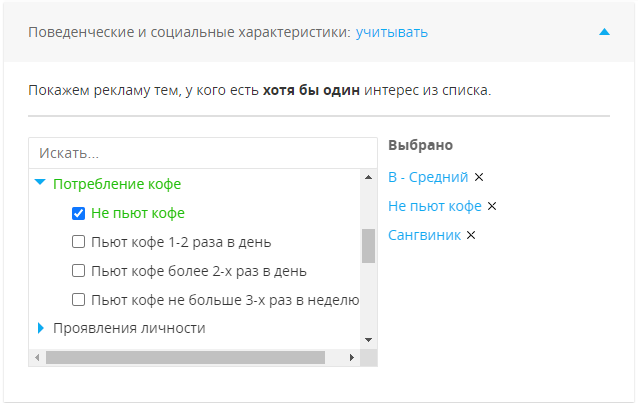 Что касается форматов, то можно запускать как обычные графические объявления, так и аудиорекламу, и видеорекламу. Одно из главных достоинств – это большой выбор таргетингов. Есть узкие таргетинги, например, пользователи, которые пьют кофе, имеют высокий доход, ищут коммерческую недвижимость и т.д.