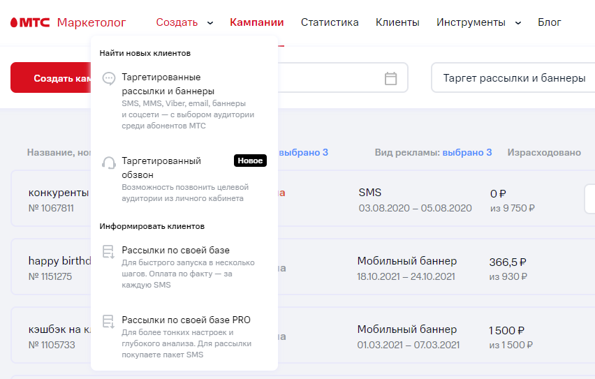 Если хотите получить охваты по целевой аудитории, то почему бы и не задействовать МТС Маркетолог. Кроме того, вас приятно порадует цена.