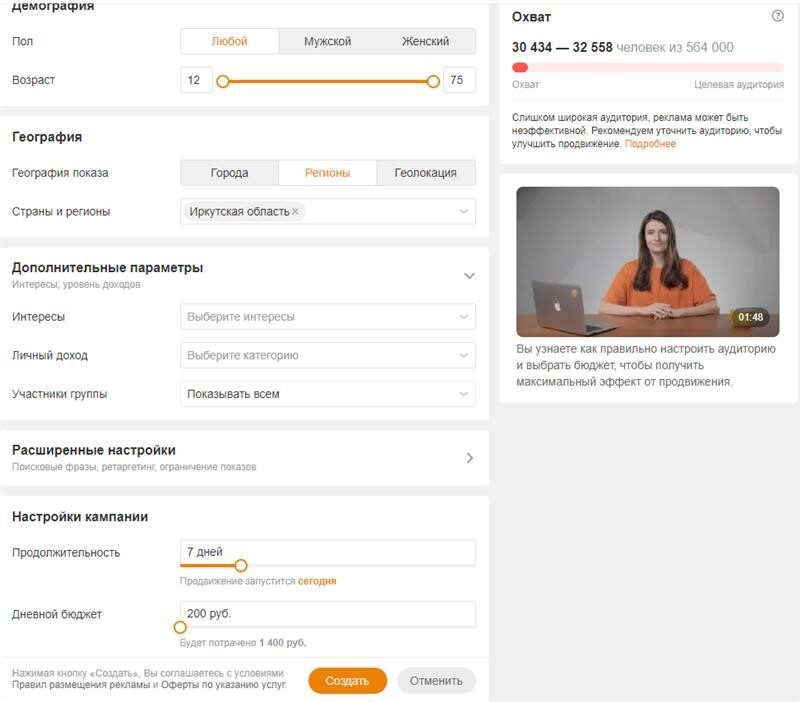 Чтобы продвигать услуги своего бизнеса в этой социальной сети, задействуйте таргетированную рекламу. Это можно сделать с помощью рекламного кабинета ОК.Бизнес. По функционалу рекламный кабинет ничем не отличается от кабинета ВКонтакте: есть различные таргетинги, возможности и форматы.