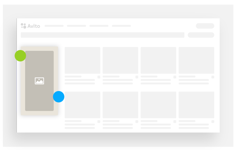 Помимо этого, есть медийная реклама на Авито. Баннеры показываются в результатах поиска, на главной и в мобильной версии сайта.