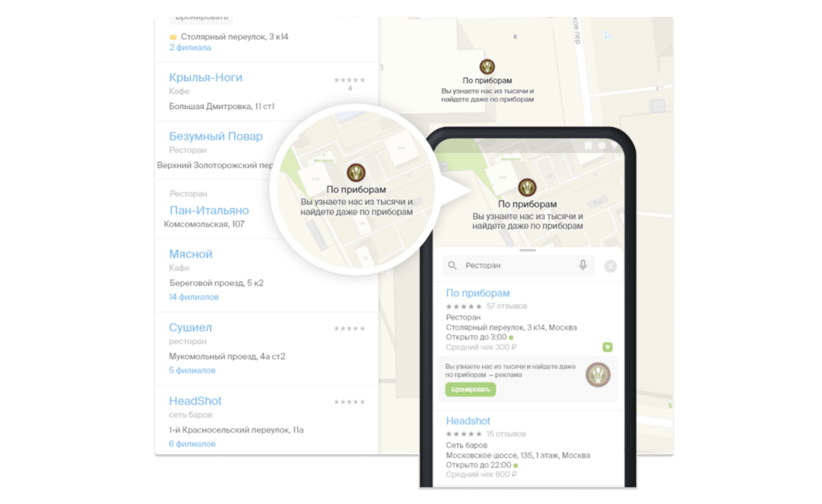Ритейл. Площадками пользуется широкая аудитория, поэтому сервисы позволяют эффективно рекламировать продукты и услуги, запускать акции и предлагать скидки. Кроме того, человек сразу понимает, где находится компания и как до нее добраться.