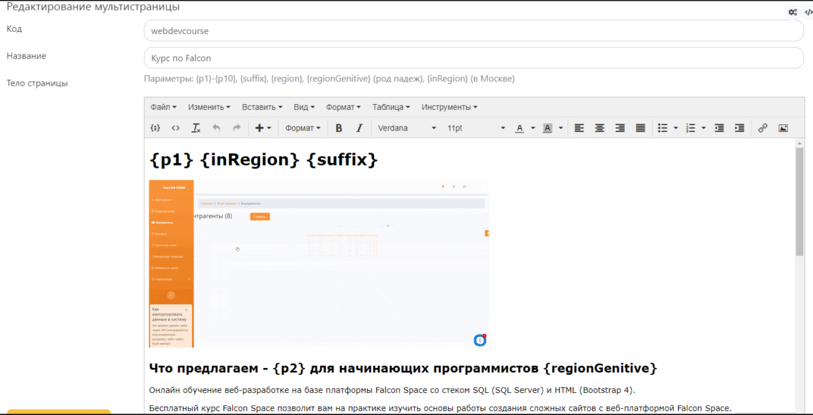 Есть один текст страницы. В него вставляются переменные вида {p1}.