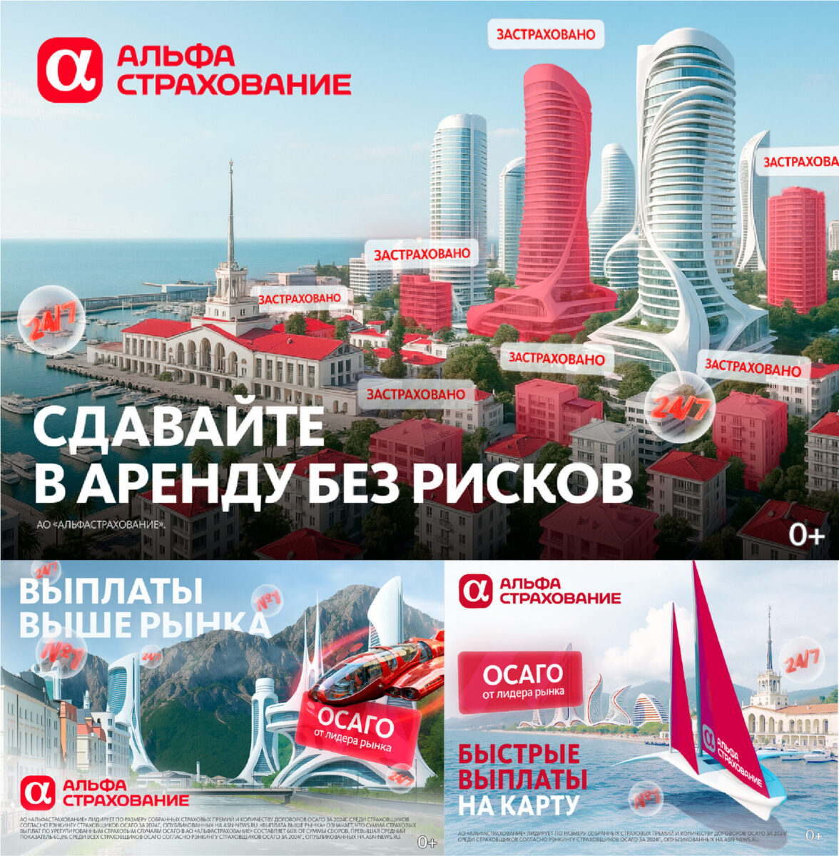 Мы объединили культурный код региона и специфику позиционирования АльфаСтрахования — «сервисы будущего в настоящем». Адаптировали услуги для рекламы в Сочи и Нижнем Новгороде так, чтобы реклама притягивала взгляды за счет знакомых каждому горожанину локаций, ситуаций, локальных выражений.