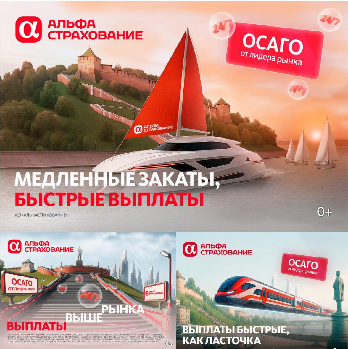 Наш постоянный заказчик — АльфаСтрахование — как раз придерживается стратегии планомерного повышения показателей по отдельным регионам. Так, мы разрабатывали креатив для OOH в Сочи и Нижнем Новгороде.