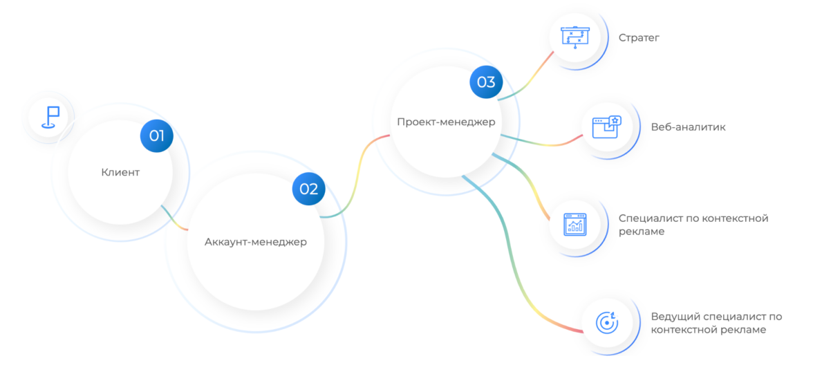 • Аккаунт-менеджер — связующее звено с клиентом.