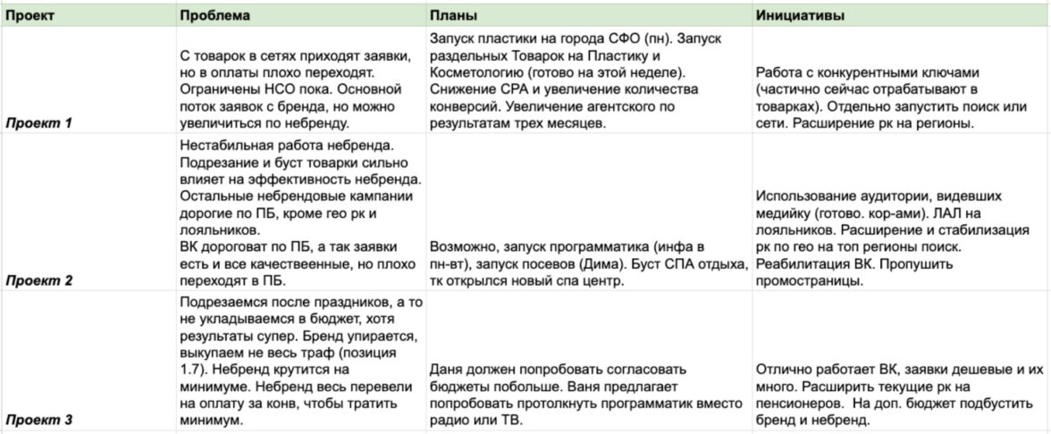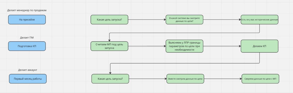 • Медиаплан — расчет KPI, выбор каналов, настройка аналитики.