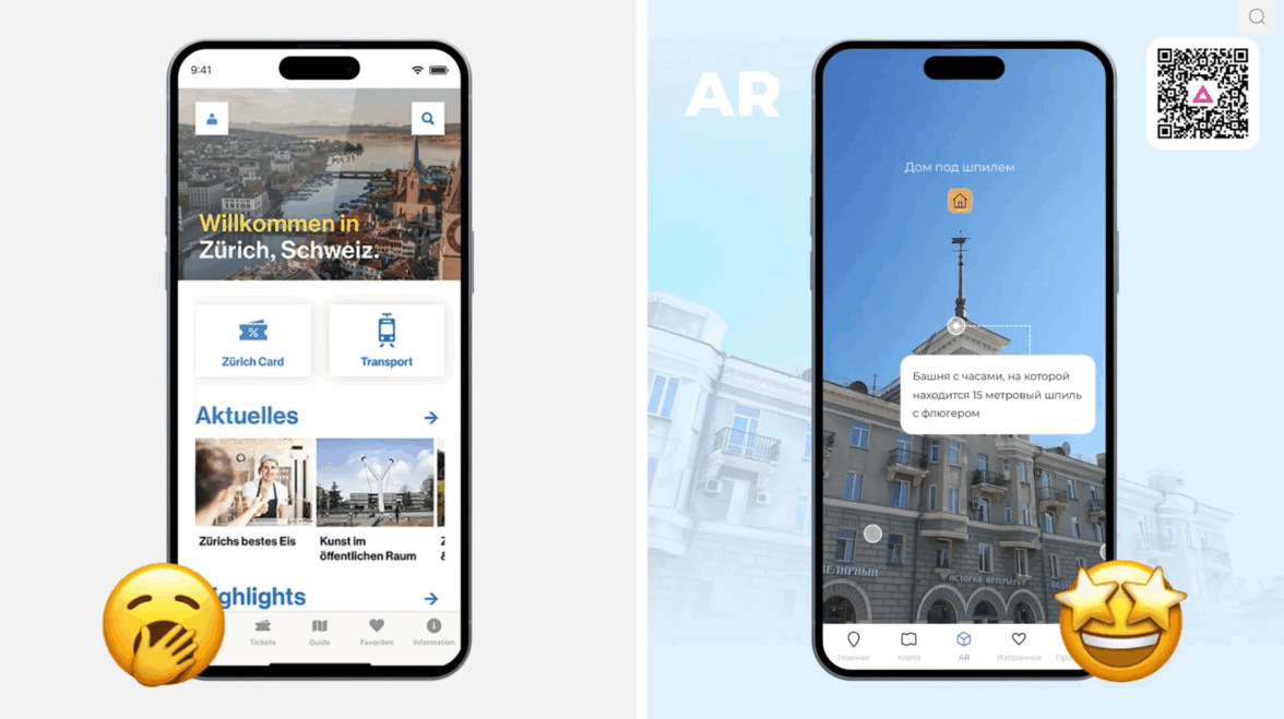 Не стоит копировать визуал конкурентов. Да, их приложение может пользоваться спросом, но ценности в заимствованной версии не будет — пользователи только пошутят в духе «только не списывай точь-в-точь». Продукт не выделится, не запомнится.