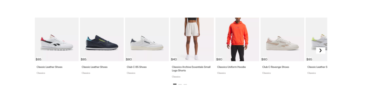 Reebok использует гиперперсонализацию даже для неавторизованных пользователей. Алгоритмы отслеживают все действия юзеров на сайте. При разрешённой отправке сообщений формируется индивидуальный лист товаров, который с большей вероятностью понравится клиенту.