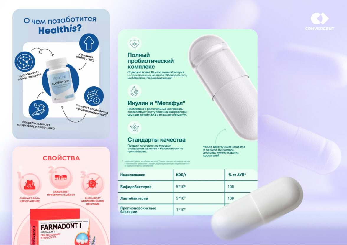 Мы в Convergent внимательно следим за трендами и уже больше 15 лет работаем с лидерами фармкатегории. Ниже — несколько принципов, которые помогают делать коммуникации через сайты, рекламу и ecom эффективными и убедительными даже в ограниченных условиях.