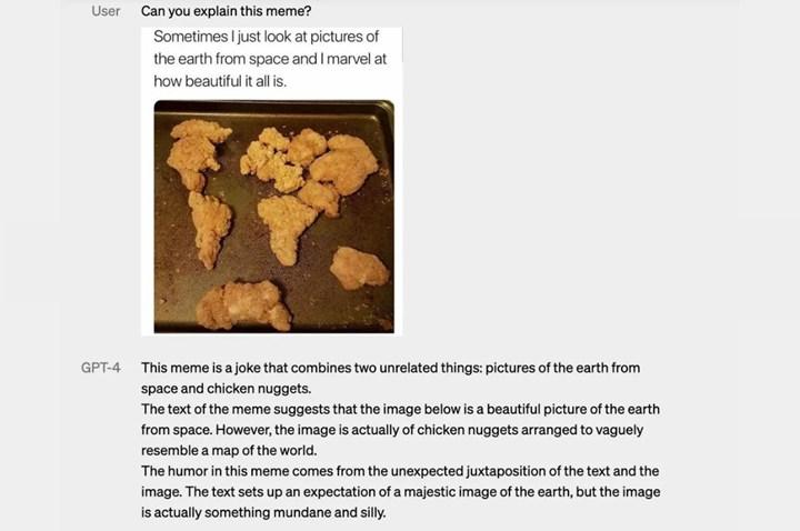 GPT-4 объясняет мем с шуткой про вид Земли из космоса на подносе с наггетсами