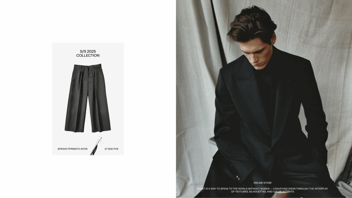 Графический язык бренда стал прямым продолжением стратегии. Мы сохранили эмоциональность героя Gvalt, но перевели её в язык современной, зрелой fashion-эстетики. Ушли от подросткового бунта и граффити-наследия, но избежали излишней романтизации. Вместо этого создали визуальный тон — чувственный, честный, минималистичный — который подходит растущему бренду и отражает его характер.
