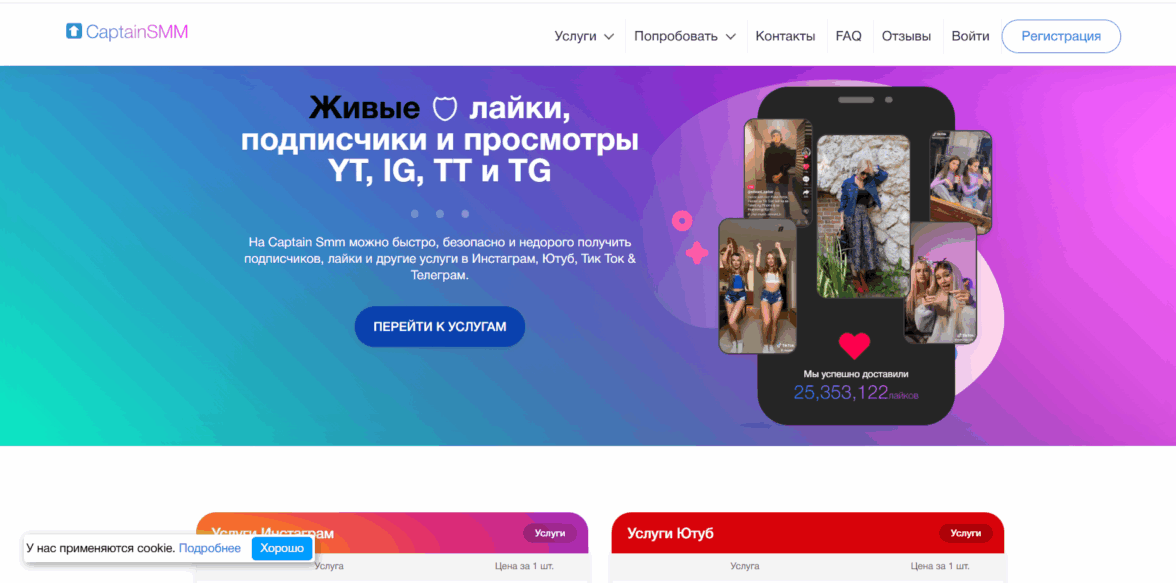 Capitansmm — подходит для международного продвижения: можно привлечь пользователей из Украины, Беларуси, Казахстана, Германии. Заказывала 100 одобрений — пришли за 30 минут, все профили с фото и постами. Сервис работает с телефона и ПК, а поддержка общается на русском. Клиенты отмечают гибкие тарифы и мгновенную активацию заказов. Гарантия на трафик даёт уверенность в результате.