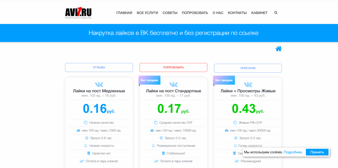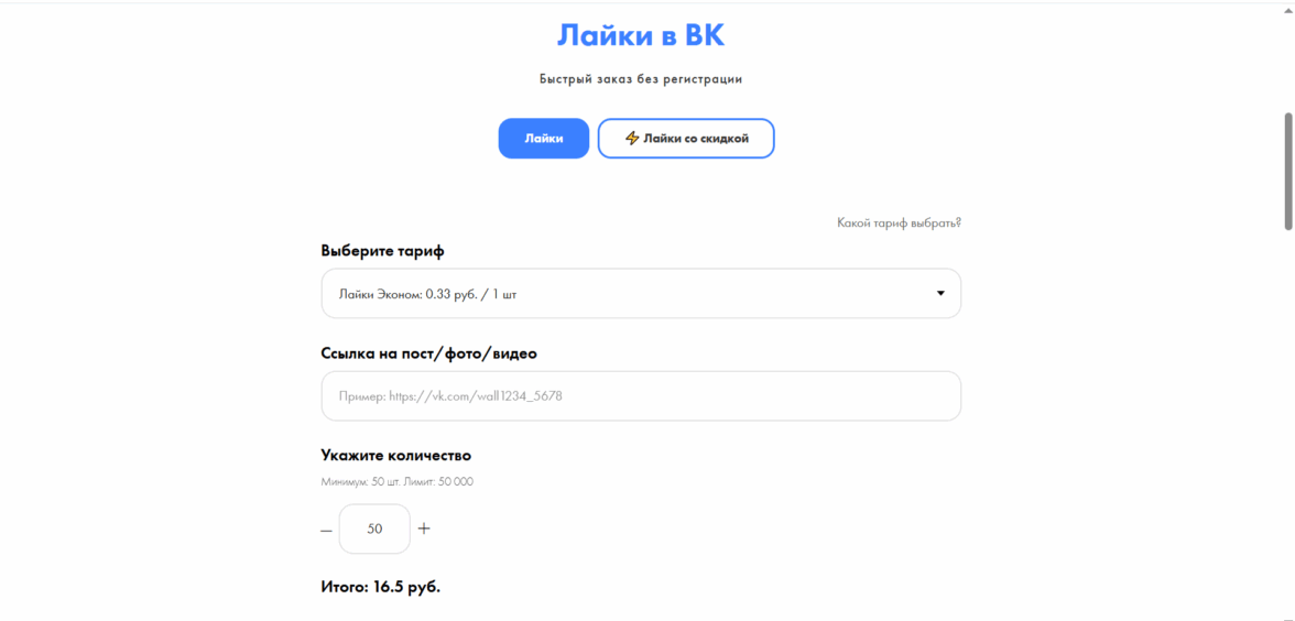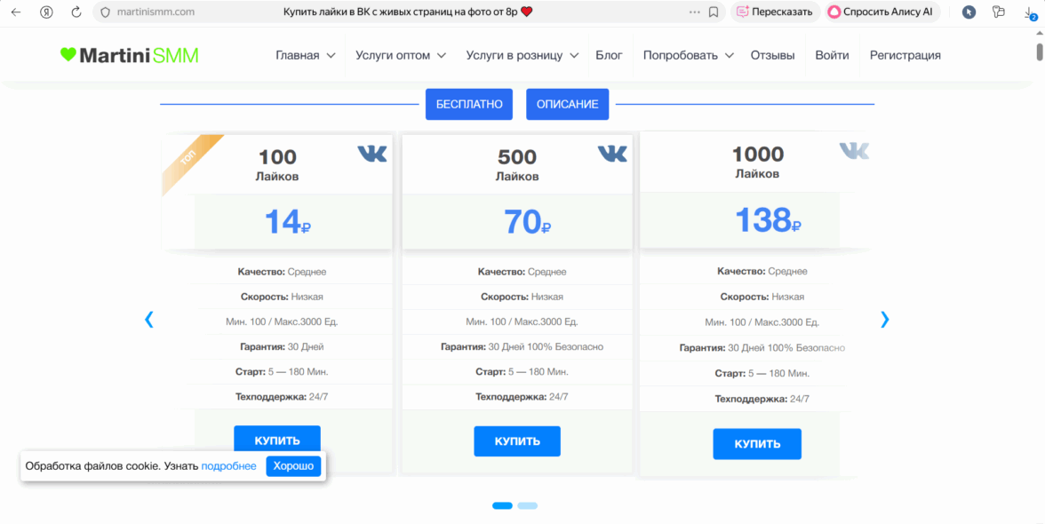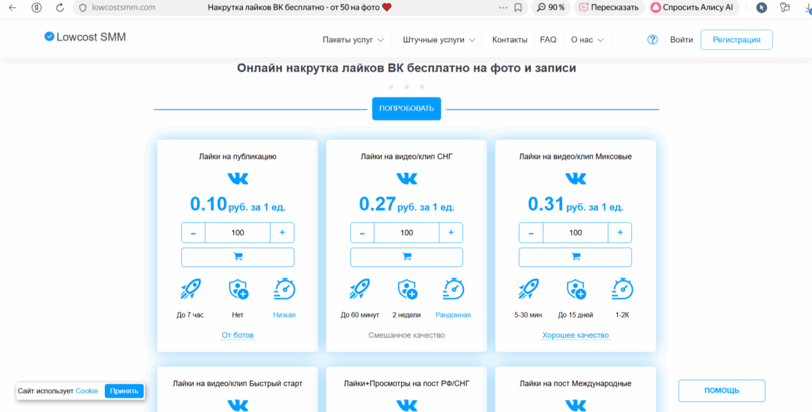 Простоспец — удивил минималистичным подходом: здесь можно получить первые 100 лайков на фото в ВКонтакте без регистрации и лишних шагов. Нажала «Начать», указала ссылку — реакции начали поступать через 15 минут. Сервис ориентирован на русскоязычную аудиторию, а цены стартуют от 4 руб./сердечко. Пользователи отмечают мобильную версию — управлять заказами удобно с телефона. Много положительных отзывов о честности: нет скрытых платежей, а статус заказа отображается в реальном времени. Для новичков есть тестовый пакет на 20 штук — можно проверить качество перед крупными вложениями.