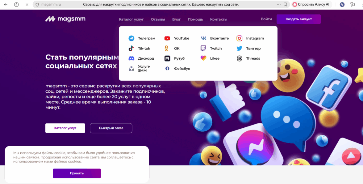 Sprintersmm — мой фаворит для срочных задач. Заказывала 100 сердечек: пришли за 20 минут, 88 % сохранились через неделю. Цены стартуют от 7 руб./реакция, а при опте от 1 000 скидка 25 %. Сервис компенсирует списания, а пользователи хвалят Telegram‑поддержку и отчёты по демографии. Много отзывов о стабильности трафика и живости профилей.