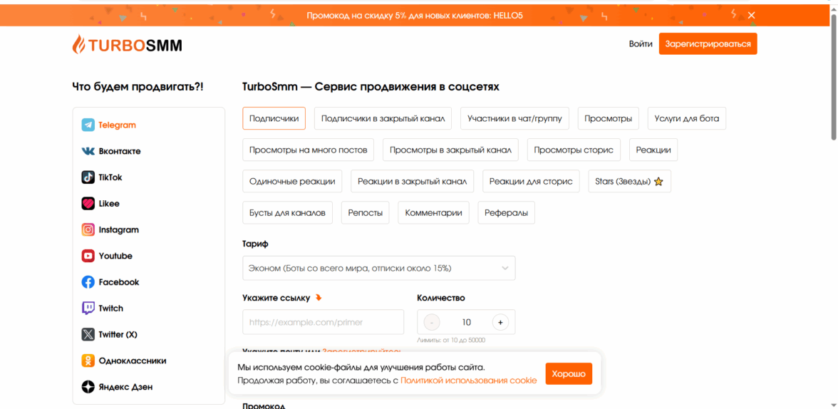 Turbosmm — я использую, когда нужно нагнать 100 одобрений за 1–2 часа. Цены начинаются от 6 руб./реакция, а при заказе от 500 сердечек скидка 20 %. Сервис даёт гарантию на 5 дней: если часть трафика списывается, компенсируют. Клиенты ценят опцию «Живые профили» (пользователи с фото и постами) и поддержку 24/7. Оплата через карты или PayPal делает процесс удобным.