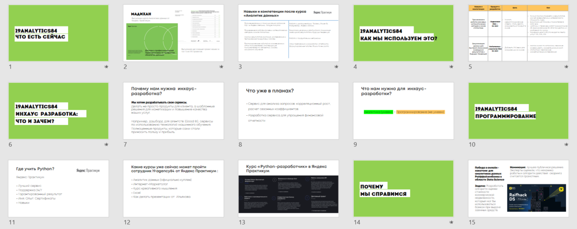 Слайды из презентации Мадихана, с которой он защищал покупку курса на Яндекс.Практикуме