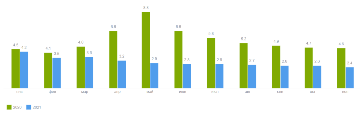 Следующая причина — это пандемия, которая сломала всё — и в HR-среде тоже. В 2020 году компании приостановили набор новых сотрудников, а в этом — усиленно стали искать кадры. Как показывает статистика HeadHunter, по России прирост вакансий за этот год составил 67%, а прирост резюме — только 1% (январь-ноябрь 2020/2021).