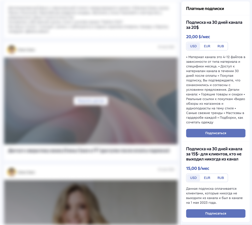 Ценообразование. Чтобы упростить задачу, на старте можно создать только один уровень платного доступа. Далее, собирая и анализируя обратную связь от подписчиков, вы лучше узнаете их предпочтения и сможете создать несколько вариантов подписки, предназначенных для разных категорий ЦА.