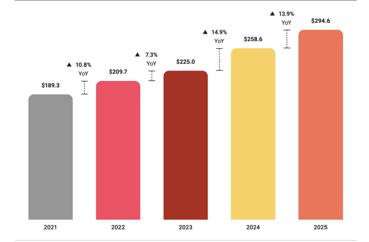 Выручка от рекламы в социальных сетях продолжала расти в 2025 году, достигнув $117,7 млрд. Это на $29 млрд больше, чем в 2024 году, что соответствует росту на 32,6%.