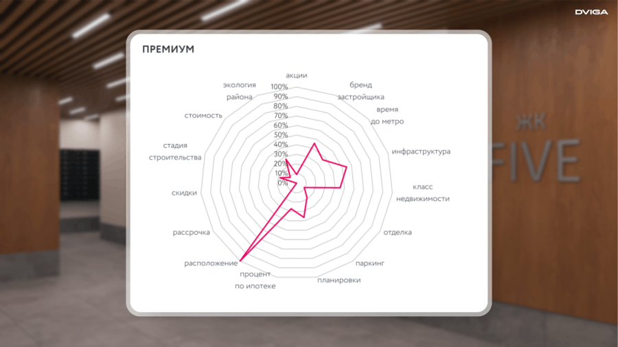 В большинстве случаев, покупатели элитной недвижимости приобретают не первую квартиру, они знают рынок и имеют представления о том, как должно выглядеть идеальное предложение. Клиент выбирает прежде всего инвестиционно привлекательные проекты: обращает внимание на местоположение объекта, общую концепцию комплекса и репутацию застройщика.