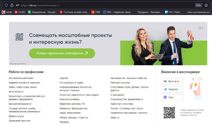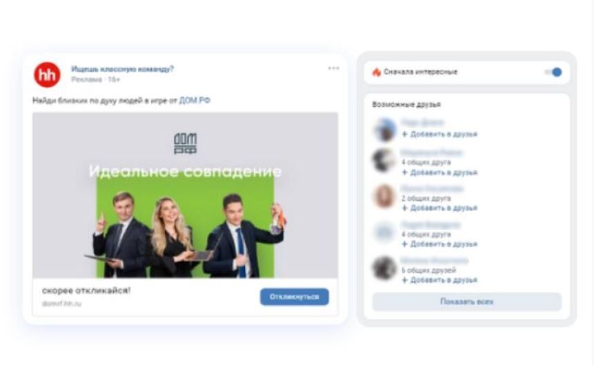 Баннеры с рекламой спецпроекта можно было увидеть на главной веб-странице hh.ru и в мобильной версии сервиса, на площадках «Яндекса», VK, «Одноклассников» и Mail.ru — такой охват дал инструмент Clickme. Акцент в рекламе тоже сделали на людях и ёмких ярких фразах — всё вместе отлично сработало на привлечение внимания соискателей.