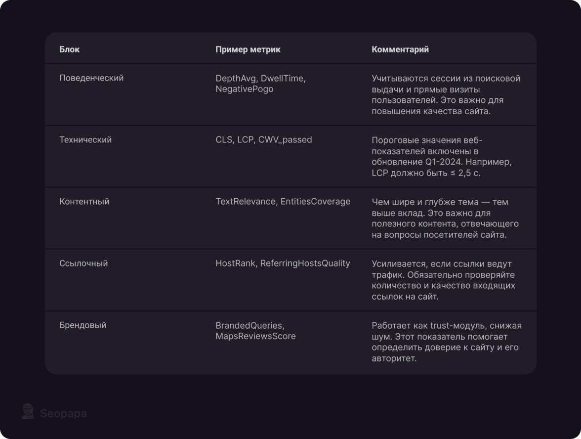 «Ссылки решают всё» — после обновлений 2024 года их вклад заметно снизился.