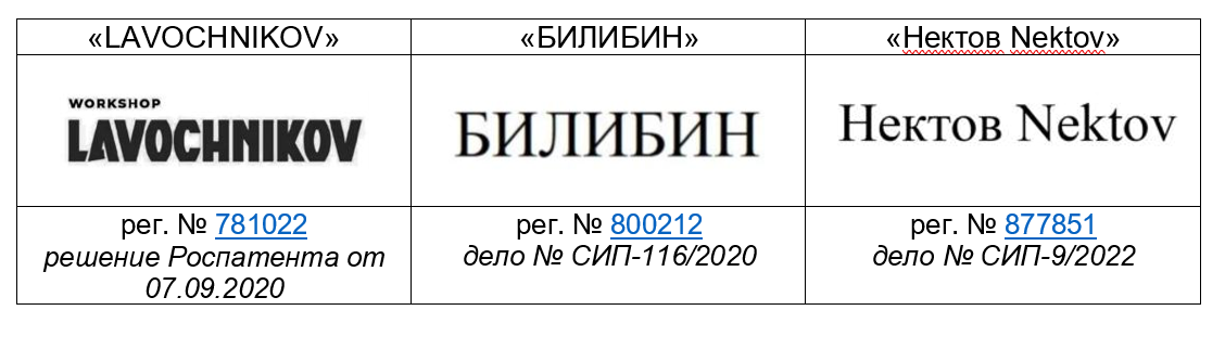 несоответствие общественным интересам, принципам гуманности и морали (подп. 2 п. 3 ст. 1483 ГК) (например: Решение СИП от 11.12.2019 по делу № СИП-678/2019 [СИП-678/2019 (arbitr.ru)] и Решение Роспатента от 27.05.2019 об отказе в государственной регистрации товарного знака «ПСЕВДОНИМ ПЛАТОВ» по заявке № 2017731294 [2019В00001_20190528.pdf (fips.ru)]).Характерно и то, что в отношении одного заявленного фамильного обозначения может быть указан как один, так и несколько мотивов для отказа в регистрации товарного знака (например: Решение Роспатента от 26.04.2022 об отказе в государственной регистрации товарного знака «MENDELEEV» по заявке № 2020773163 — [2021В02762.pdf (fips.ru)];