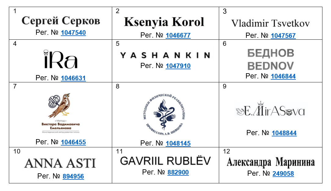 использоваться имена (или инициалы) либо другие словесные элементы (словесные знаки),