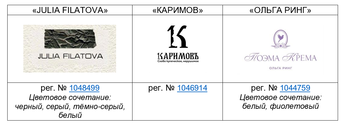 Таблица 4. Фамильные товарные знаки в цветовом сочетании и с особой графикой