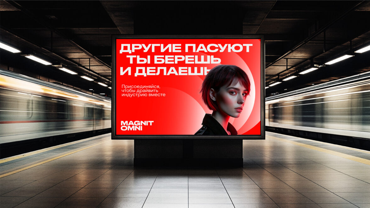 Графика, разработанная командой LINII, поддерживает тему постоянного развития и выделяется благодаря насыщенному красному цвету. В случае Магнит OMNI цвет материнского бренда трансформируется в более яркий и смелый, транслируя энергичность и современность. В дополнение к этому, глубокий графитовый цвет выступает фоном, подчеркивающим яркие акценты и добавляющим интеллектуальности в визуальную коммуникацию.