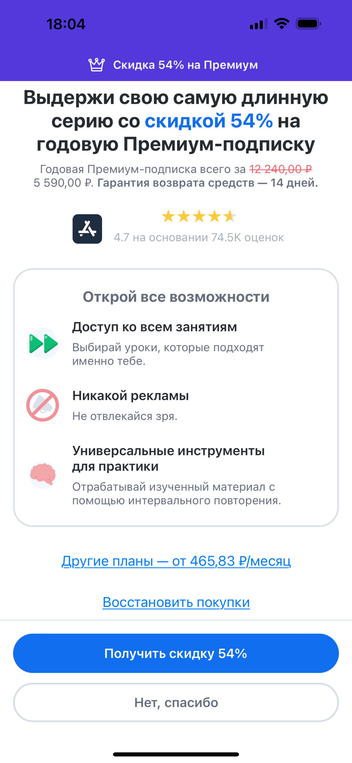 Продуманное время показа рекламы. Не стоит отвлекать человека уведомлением, когда тот уже оформляет заказ. Рассказать про новые индивидуальные скидки при открытии приложения — более эффективный вариант.