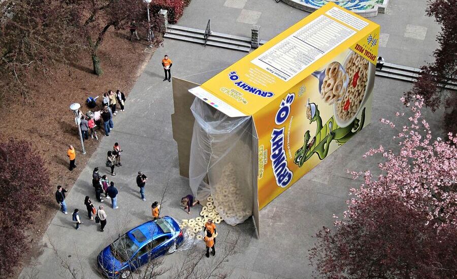 Рекламная кампания хлопьев для завтрака в городском пространстве