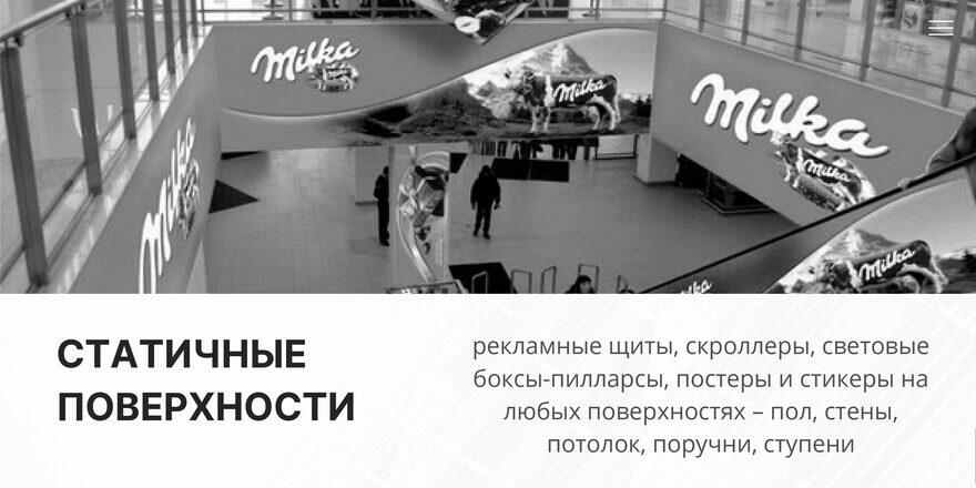 Indoor поверхности сопровождают клиента от входа и на всем пути его следования, образуя при этом систему, где один формат рекламы одного и того же бренда сменяется другим.