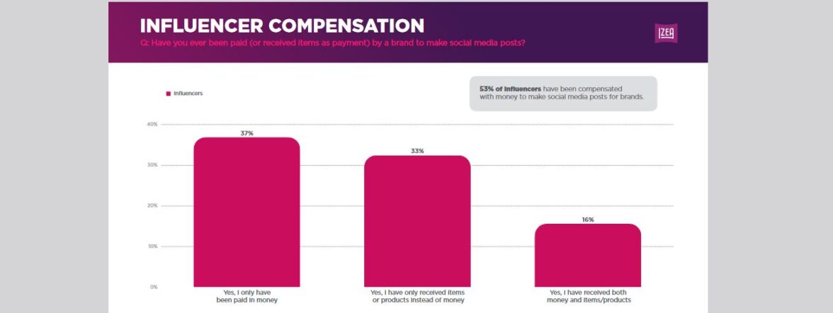 Лишь 37% из блогеров, которые сотрудничают с брендами, получают оплату только деньгами. Работа 33% оплачивается товарами и услугами брендов, а у 16% бывает и то, и другое.